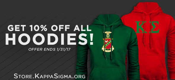 Start off the new year with a great Kappa Sigma hoodie at an unbelievable price! This month you can choose from a great selection of Kappa Sigma hoodies with a 10% off discount at checkout. This is a great time to grab the gear you want with this amazing deal. Head over to the Kappa Sigma Store to find out more about this great deal!