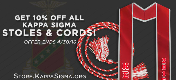 Are you graduating this year? The Kappa Sigma store is now offering a 10% discount on all Kappa Sigma stoles and cords!