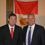 - [L-R] Brother Cameron Sholz with his father, Brother Scott Sholz, at Cameron’s initiation into the Nu-Alpha Chapter.