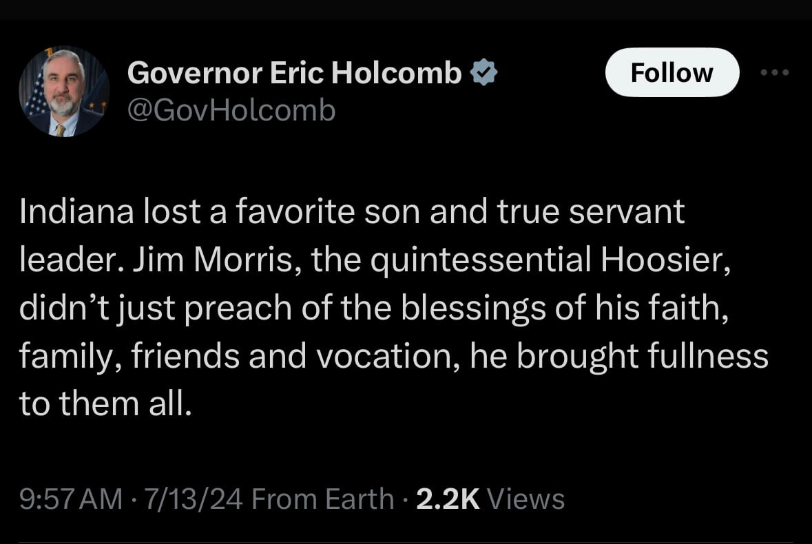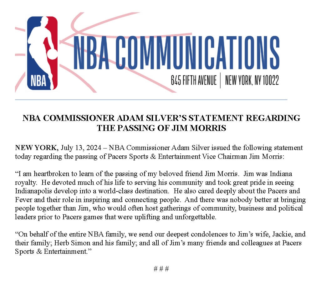 Brother James “Jim” T. Morris, a 1962 initiate of the Beta-Theta Chapter at Indiana University and Kappa Sigma’s Man of the Year in 2010, entered the Chapter Celestial today, July 13, 2024, at age 81. Brother Morris was a distinguished business leader, notably serving as President and as Vice Chairman of Pacers Sports and Entertainment from 2014 onwards.