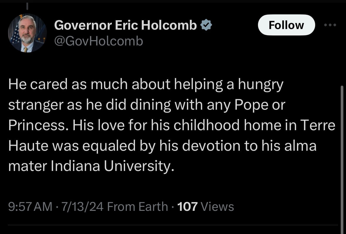 His extensive career included pivotal roles such as chief of staff to Indianapolis Mayor Richard G. Lugar from 1967 to 1973, President of the Lilly Foundation for 16 years from 1984 to 2002, Chairman and CEO of IWC Resources Corporation and the Indianapolis Water Company for 13 years (1989-2002), Special Envoy for the humanitarian crisis in South Africa, and various other significant positions.