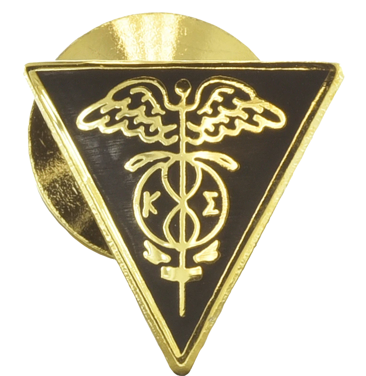 Designed by Herbert Milton Martin and adopted at the 13th Grand Conclave of 1898, the Kappa Sigma Fraternity Pledge Pin uniquely identifies new pledges of the Order. The design was inspired by the ancient god Mercury and his symbol, the caduceus.