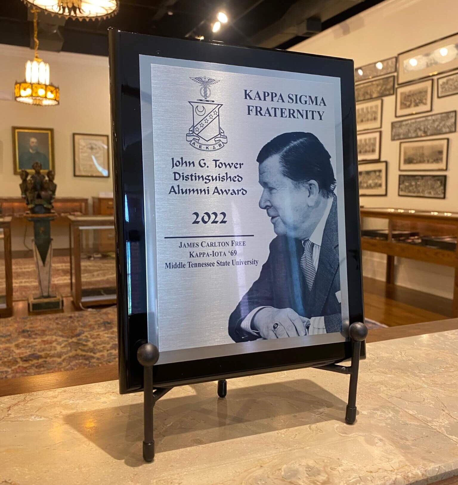 The Kappa Sigma Fraternity has announced that Brother James Carlton “Jim” Free has been awarded the US Senator John G. Tower Distinguished Alumni Award, considered one of the highest honors alumni can receive within the national fraternity.
