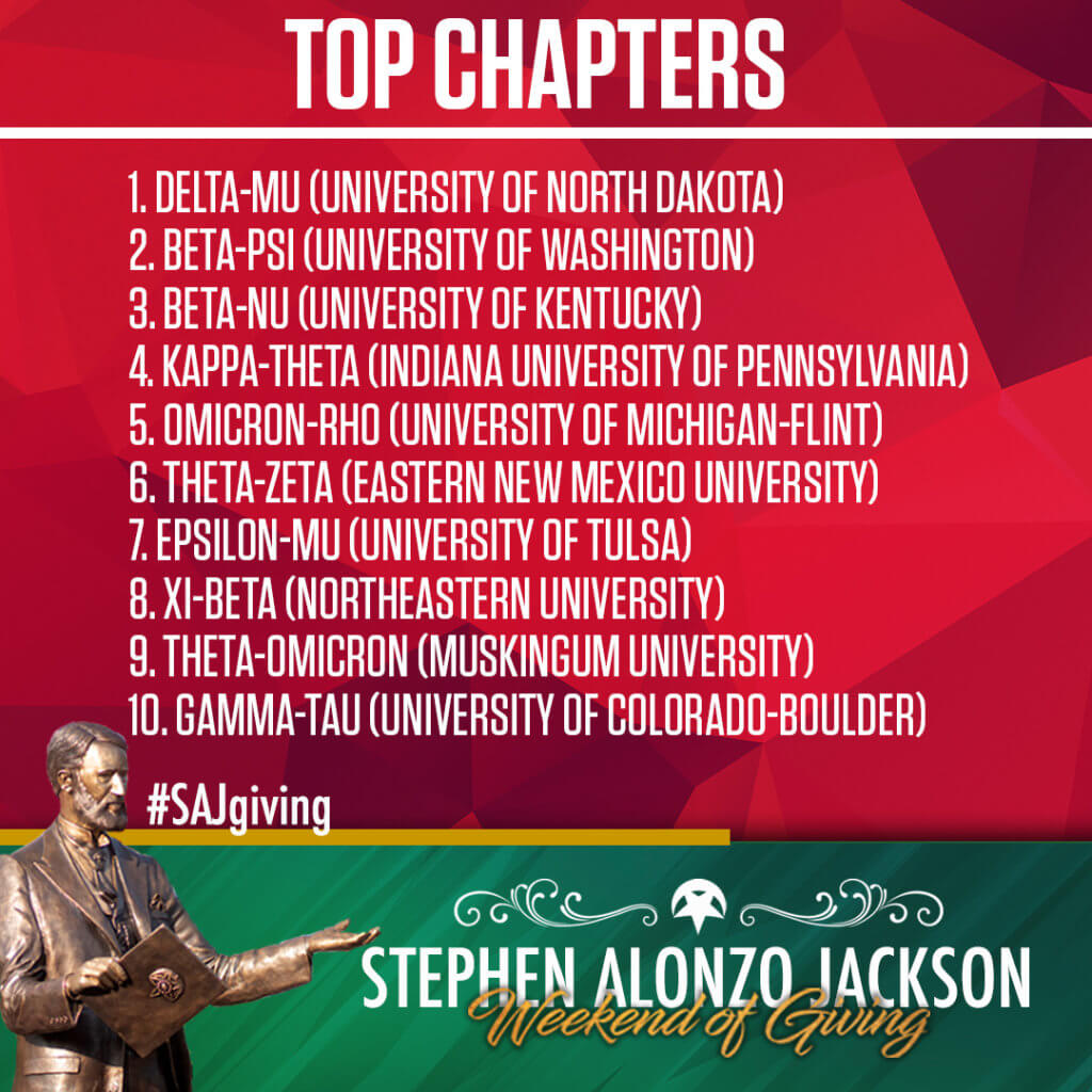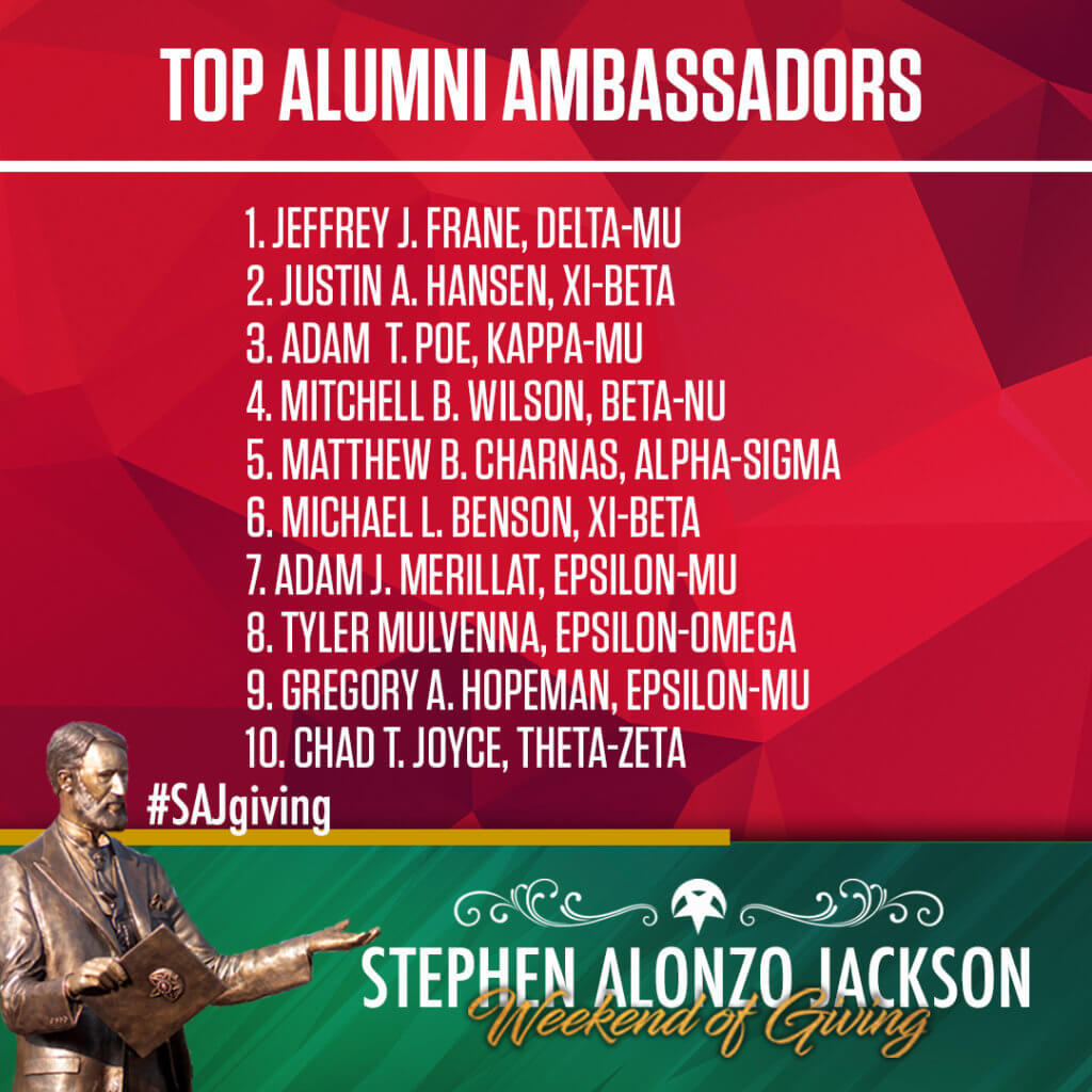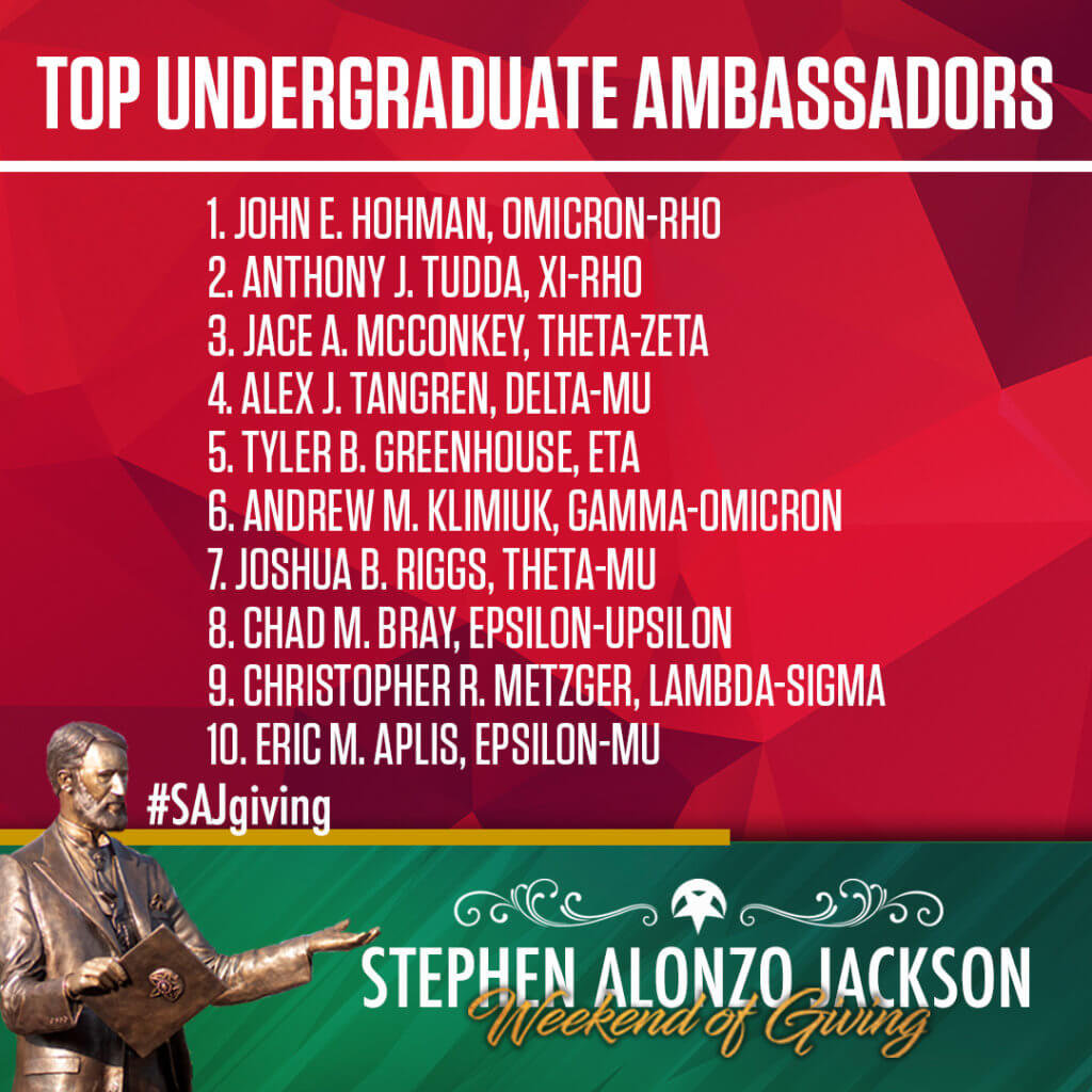 Stephen Alonzo Jackson Weekend of Giving was established in 2016 to help raise funds for the Kappa Sigma Endowment Fund’s Scholarship-Leadership Awards program. 100% of funds raised during SAJ Weekend of Giving go towards designated Chapter Scholarship Funds. Scholarship-Leadership Awards are given to qualifying Kappa Sigma undergraduate members each year on Kappa Sigma’s Founders Day (December 10).