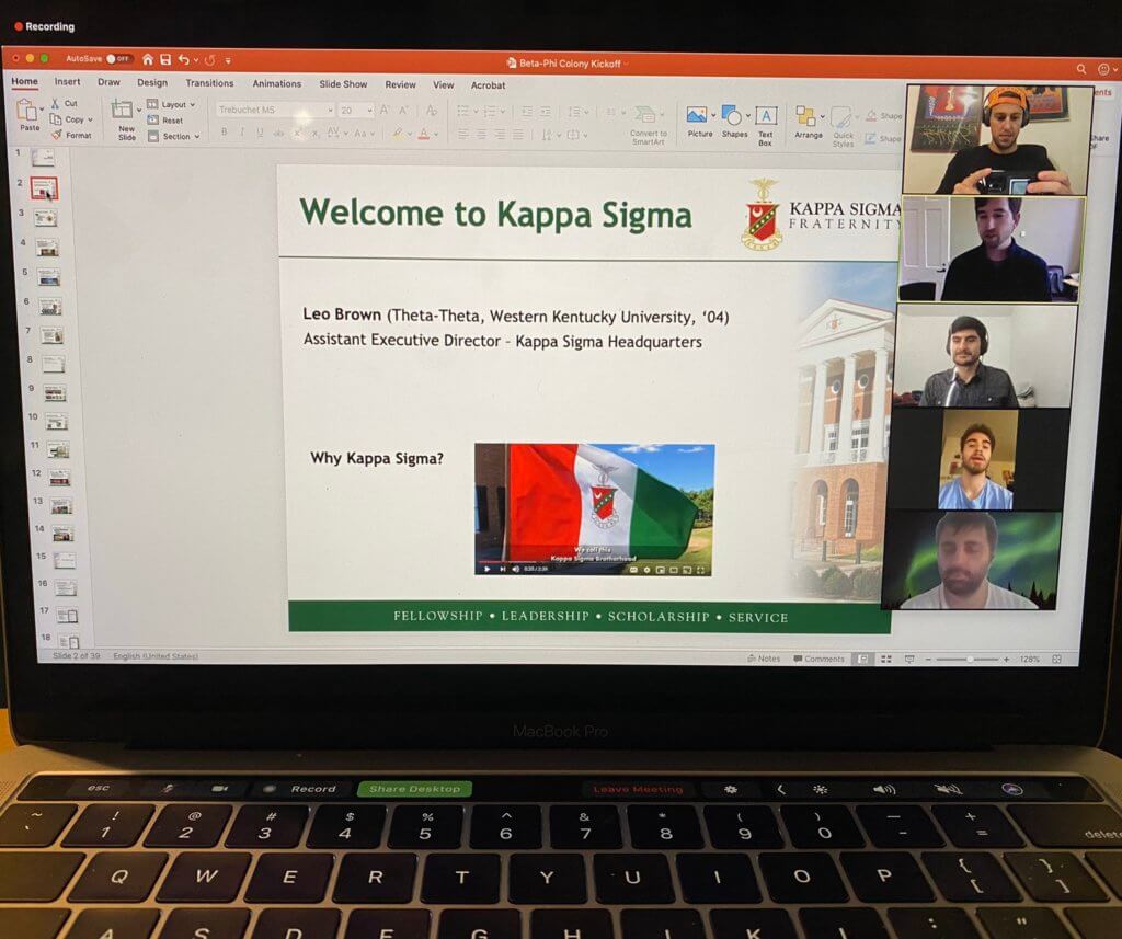 Over the weekend, the Beta-Phi Colony in Davis, California, participated in the first Virtual Colony Kickoff in Kappa Sigma history. The Kickoff was done over Zoom and led by Assistant Executive Director Leo Brown. The new Colony had been working with Area Recruitment Manager Chase Booth since early in 2020 and was approved as a Colony the week before the sheltering in place order.