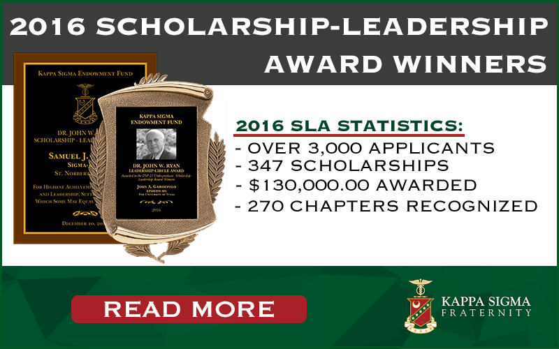 11) Kappa Sigma Endowment Fund – Announces 2016 Scholarship-Leadership Award Winners