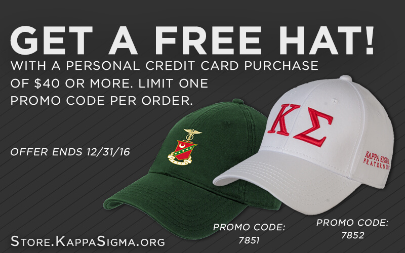 Just in times for the holidays! This month you can choose from a great selection of Kappa Sigma hats when you spend $40 or more at the Kappa Sigma Store. This is a great time to grab the gear you want with this amazing deal. Head over to the Kappa Sigma Store to find out more about this great deal!