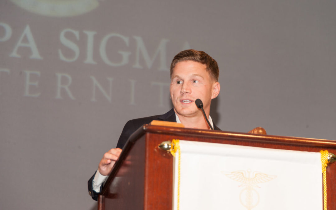 Corporal William Kyle Carpenter was initiated into the Chi-Omega Chapter at the University of South Carolina on October 27, 2013, but he is far from the typical college undergraduate. Brother Carpenter is a medically retired Marine who received the military’s highest honor for heroic actions while on deployment in Afghanistan.