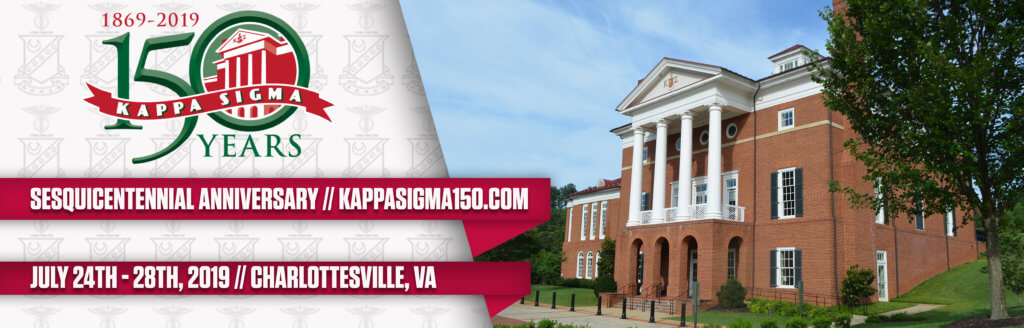 We have narrowed it down to 150 Moments in Kappa Sigma History and will count them down from now until the Opening Session on July 24th at the 72nd Biennial Grand Conclave in Charlottesville, VA to celebrate 150 years of Kappa Sigma! To remind you of just some of those many moments and people that have made us what we are today… the greatest fraternity in the world!