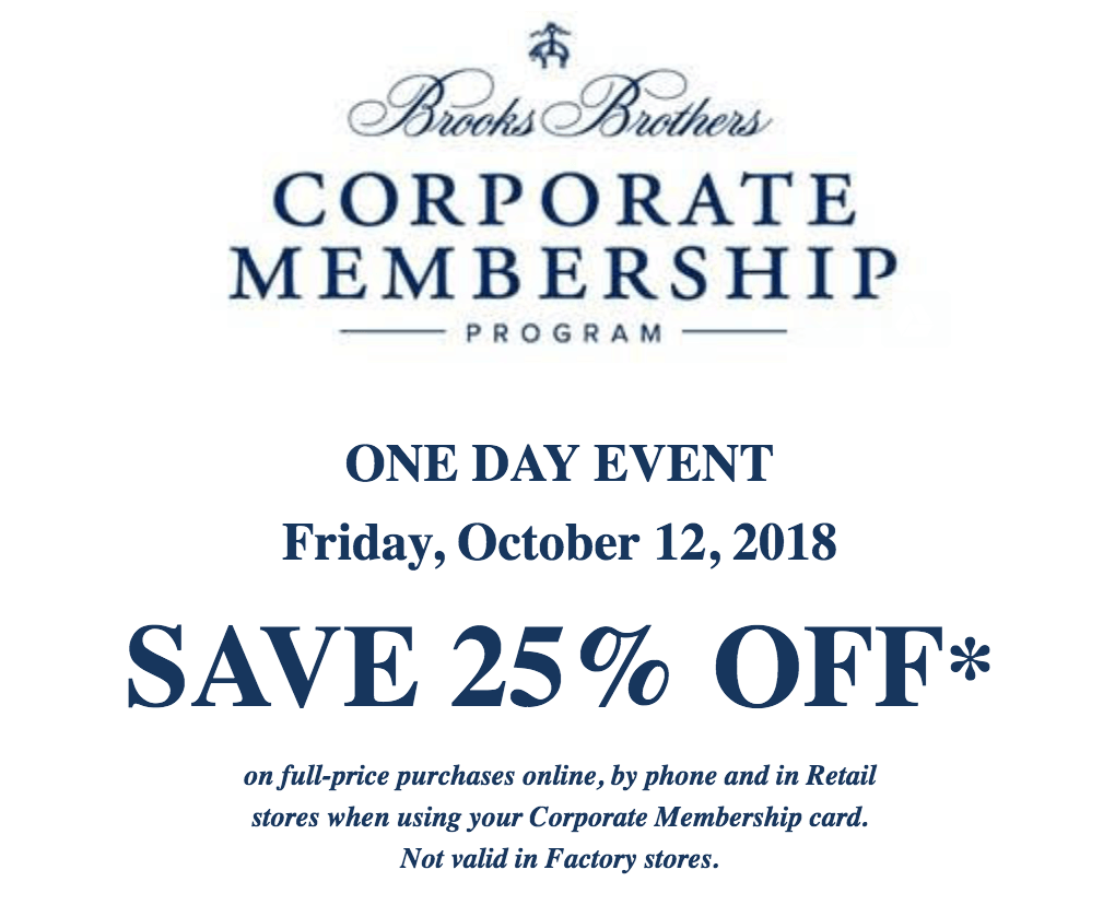 Find info on our Brooks Brothers Corporate Membership Program and how to sign up HERE
