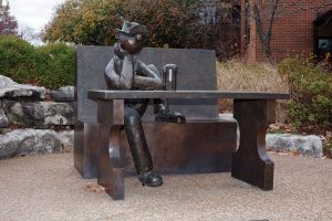 A life-sized bronze statue of Beetle Bailey stands in front of the alumni center which is near The Shack. The character Private Beetle Bailey was even said to be modeled after his fraternity brothers in the Beta-Gamma Chapter at the University of Missouri.