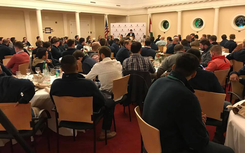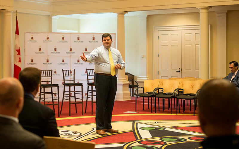 The weekend kicked off with an hour of fellowship held in the museum of the Kappa Sigma Fraternity International Headquarters, which included tours of the building and was followed by a Welcome Reception on the front patio. The reception featured a welcome by our Executive Director, Brother Mic Wilson, an Invocation by Brother Noah Richmond, Grand Master of the Beta-Psi Chapter, and remarks from our WGMC, Brother Adam Merillat.