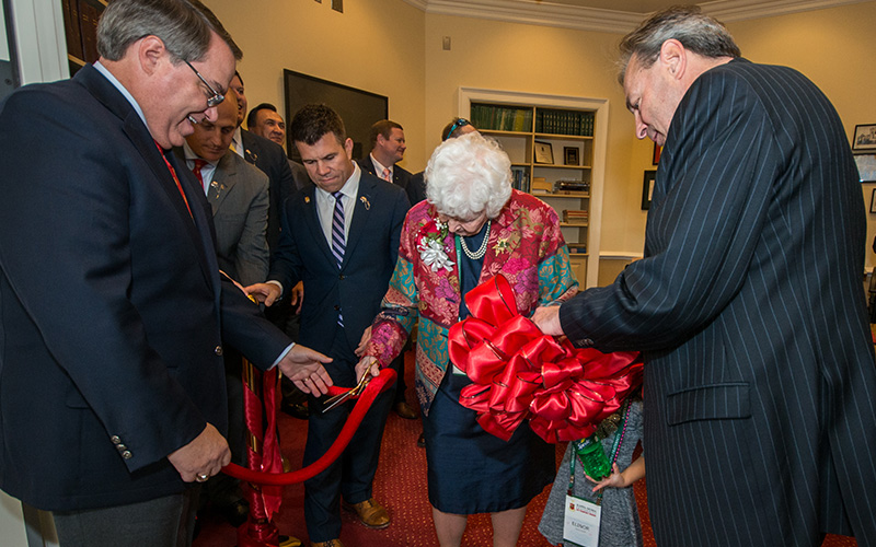 Afterwards, all gathered in the Dr. John W. Ryan Library to attend the Ribbon Cutting ceremony. Performing the honors was Dr. Ryan’s wife, Mrs. Pat Ryan.